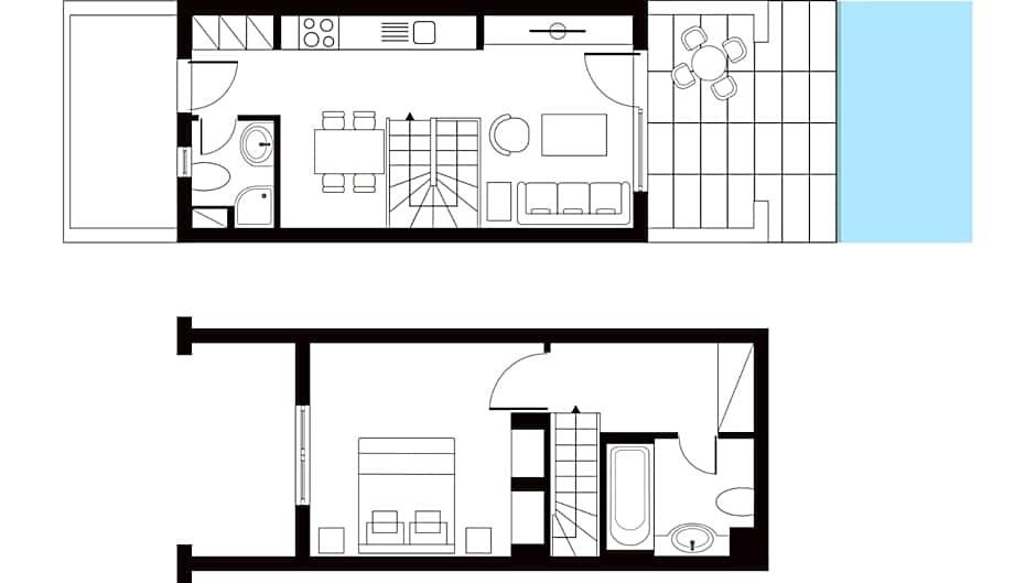 The spacious family room provides air conditioning, a tea and coffee maker, as well as a private bathroom featuring a bath and a hairdryer. The well-equipped kitchen features a refrigerator, kitchenware and a microwave. This family room consists of a dining area, a flat-screen TV with satellite channels a seating area and a terrace. The unit offers 6 beds.